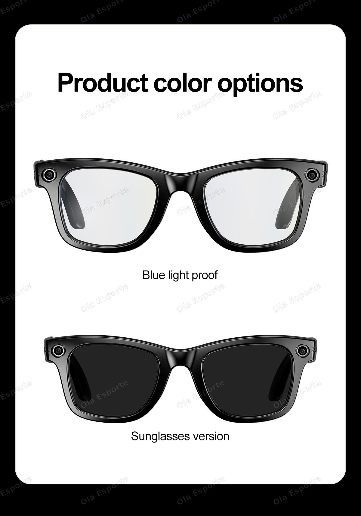 AI photo-taking and video recording fashionable smart glasses: A1 photo recognition, answering questions, taking photos, recording videos, AI dialogue interaction, Bluetooth calls, local music playback (switching, pausing music), low power consumption W20 main control chip, long-lasting battery life, dual physical buttons and dual touch buttons for convenient operation, 35g lightweight overall weight for comfortable wearing, customizable sunglasses, blue light protection, myopia, and other lenses, 260mAh large battery, IP65 dust and water resistance, ultra-low power consumption (supports continuous recording for over 2 hours without heating). Integrated with ChatGPT's advanced model, high accuracy in image recognition. Master Chip:Low power consumption, low latency - Shenju W20 Waterpfoof Level:IP65 dust - proof and water - resistant