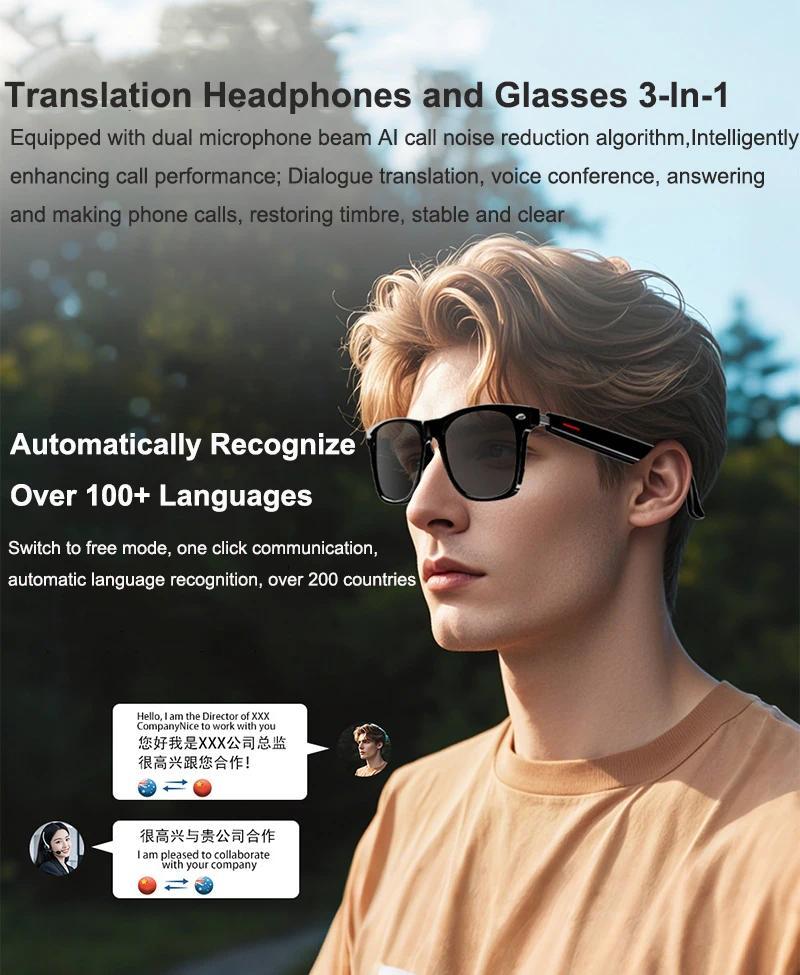 Features: * Real-time translation: Smart bluetooth translation glasses, automatically identify language types, and easily translate 144 languages. * Automatic pairing: No operation required, the temples can be easily paired automatically, remotely take photos, bluetooth audio calls, and wake up voice assistants. * Smart touch: The temples are equipped with touch sensors, and you can complete one-click translation conversations, answer calls, play music, play games, and other commands with just a light touch. * bluetooth calls: Built-in high-sensitivity microphones and noise reduction technology, you can answer, dial, hang up, and reject calls by tapping. * Voice control: AI intelligent voice dialogue function, just say a word, you can solve questions in work, study, and life, and easily help you find inspiration and answers. * IP65 waterproof: Precision structural design, worry-free wearing, easily adapt to various environments. Specification: : Smart Translation bluetooth Glasses Material: PC Battery capacity: 80+80 mAh Listening to music: 5 hours Language call: 4 hours Charging time: 1 hour Waterproof: IP65 Size: 16.6*6*5.5cm Color: as show Packing included:  1 * Smart Translation bluetooth Glasses 1 * Charging Cable Note: 1. Due to manual measurements and slight color variations, please allow 1-3 cm (0.4-1.18 inches) difference to suit different display settings. 2. Due to the light and screen difference, the item's color may be slightly different from the pictures. Please understand.