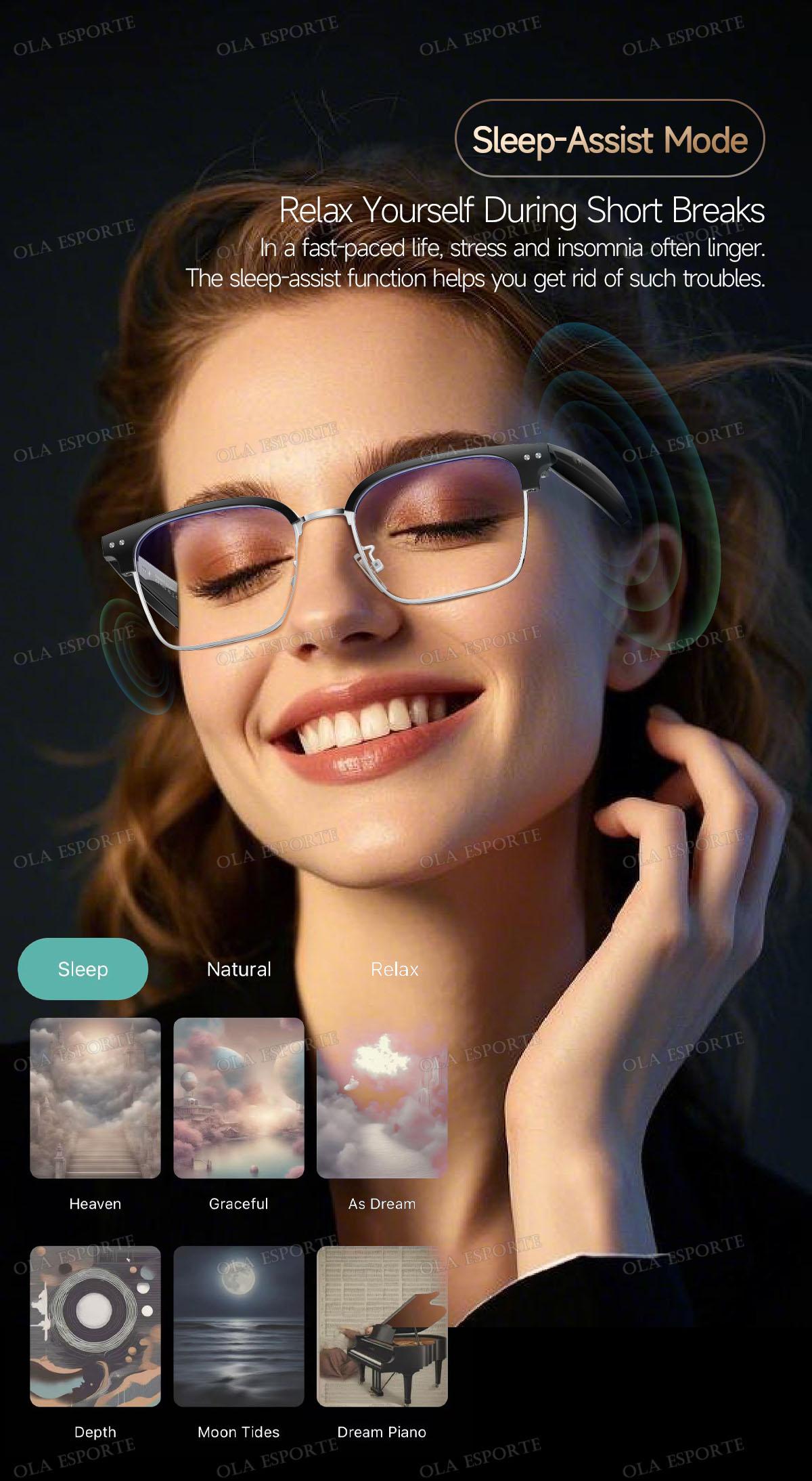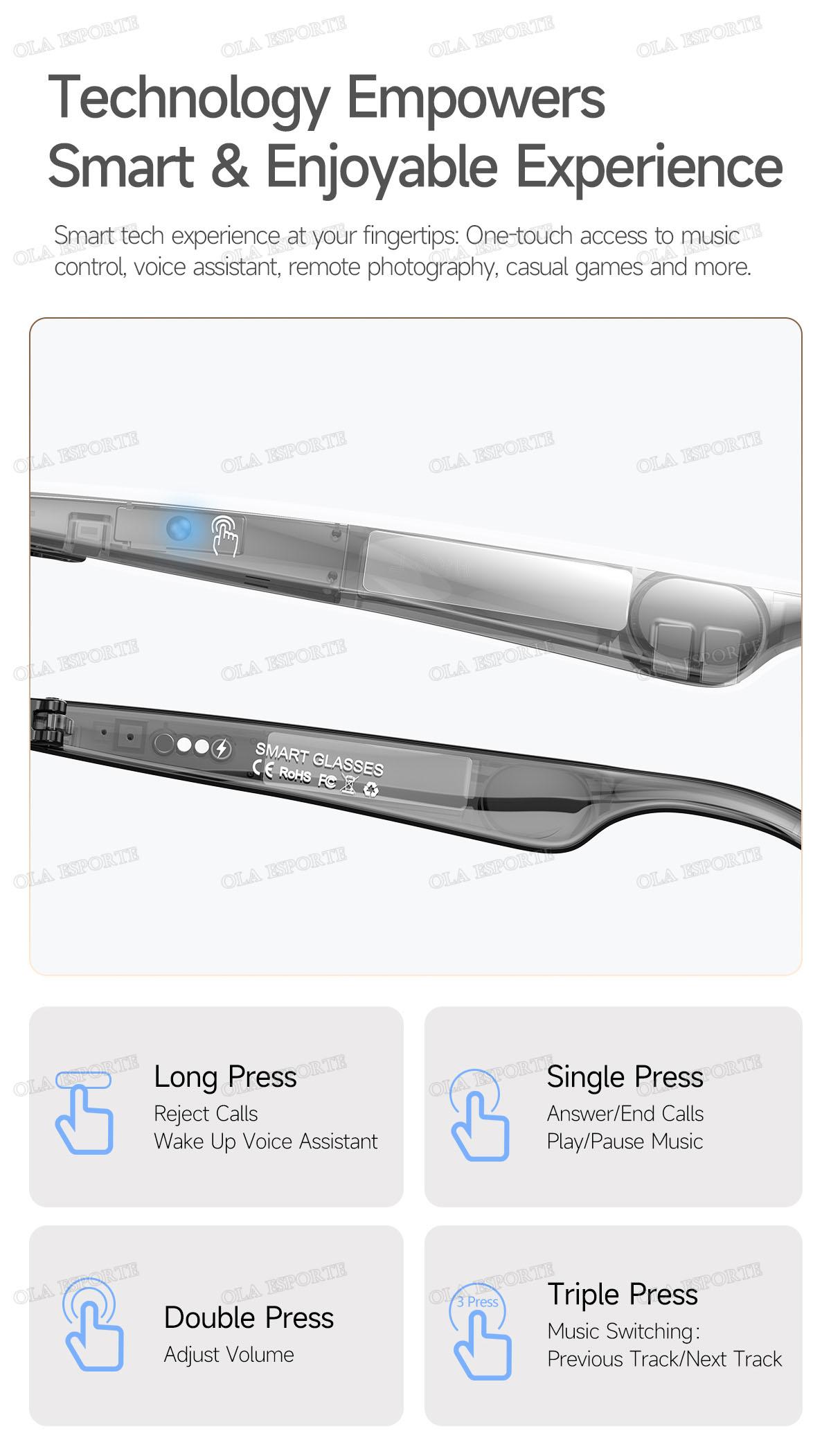 The smart glasses come with an intelligent Hall-effect sensor that automatically turns the device on/off when you put them on or take them off.