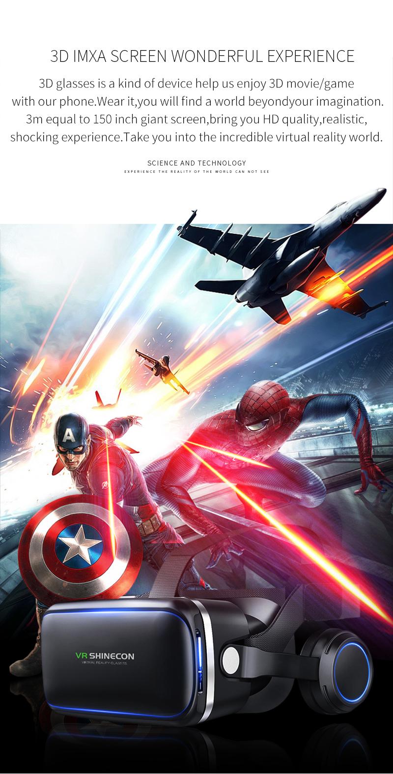 VR Shinecon 6.0 Headphone Version 3D Virtual Reality Stereo Helmet VR Headset with Remote Control for IOS Android