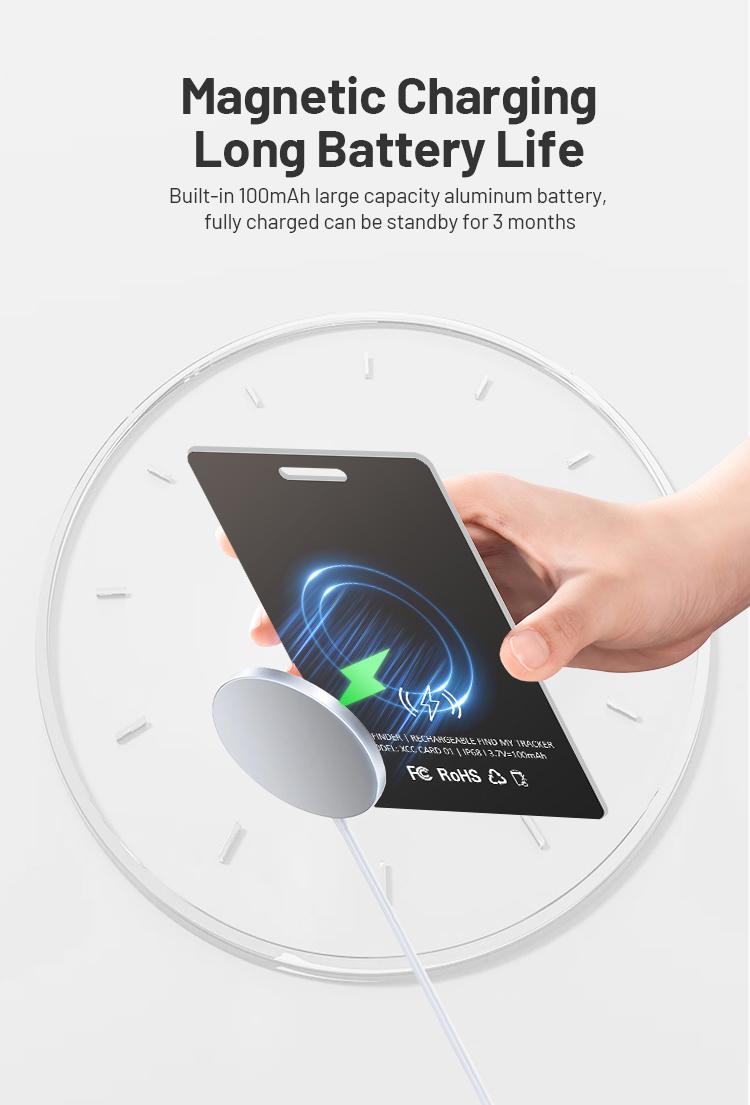 Simplify charging with wireless technology. A full charge lasts up to 5 months, indicated by a color-changing LED light. apple find my wallet card can reusable multiple times.